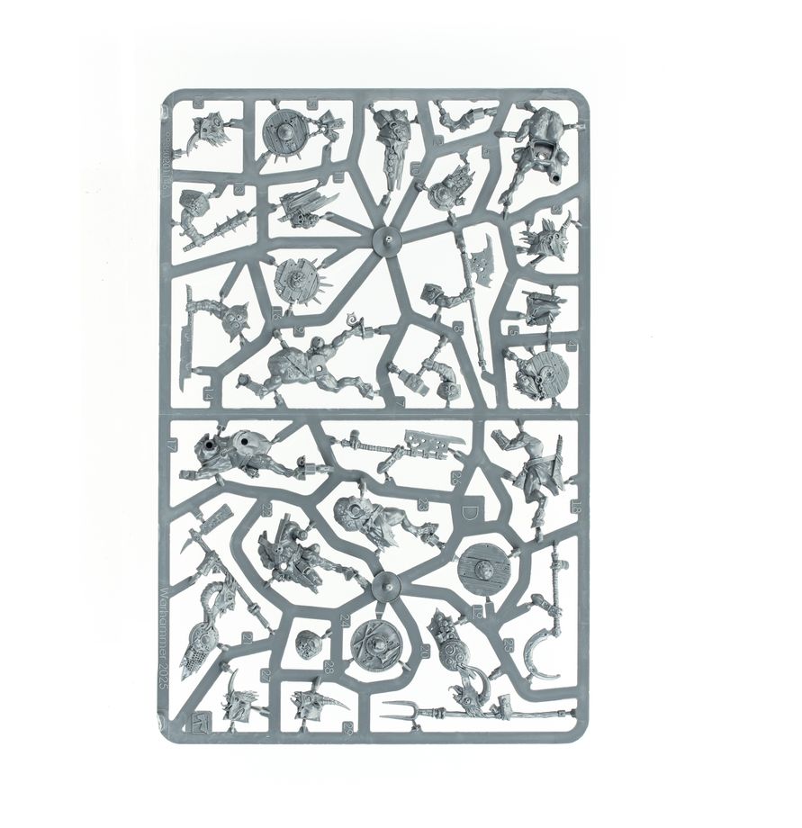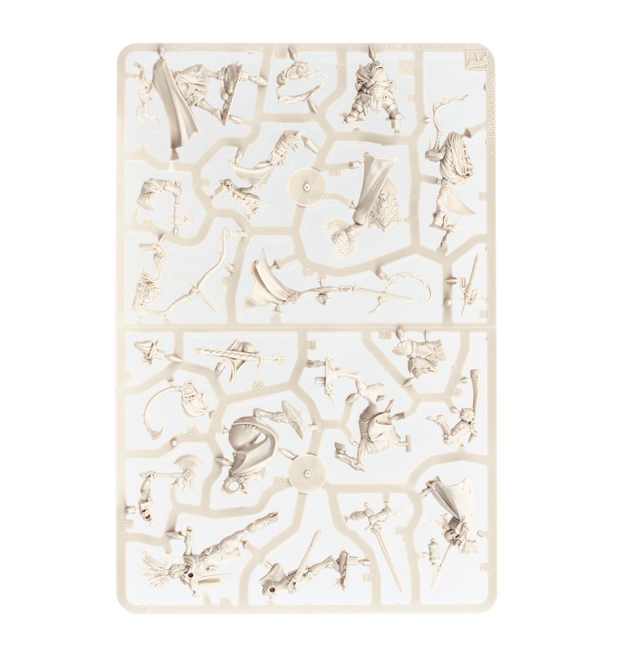 This kit comprises 211 plastic components, 1x Citadel 60mm Oval Hex Hole Base, 1x Citadel 50mm Round Hex Hole Base, 3x Citadel 28.5mm Round Hex Hole Bases, 8x Citadel 40mm Round Hex Hole Bases, 11x Citadel 32mm Round Hex Hole Bases, and 25x Citadel 25mm Round Hex Hole Bases. These push-fit miniatures can be assembled without glue and are supplied unpainted
